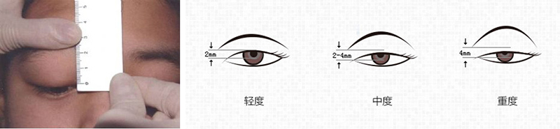 1、上眼瞼遮住眼角膜上2毫米為輕度上瞼下垂。